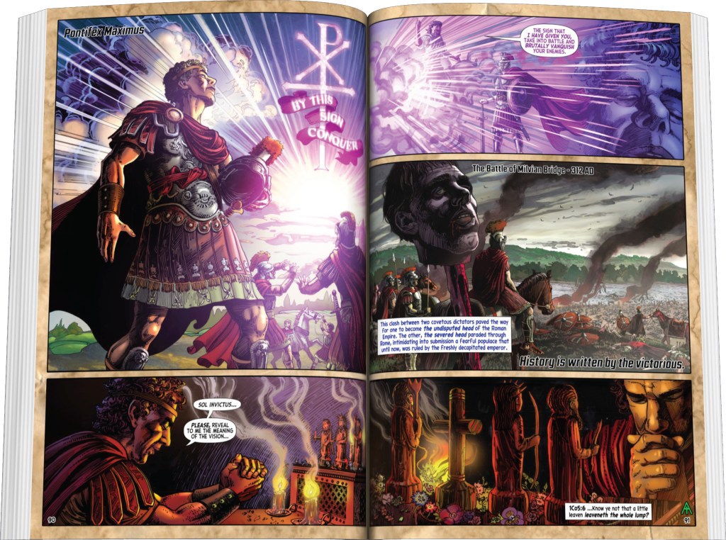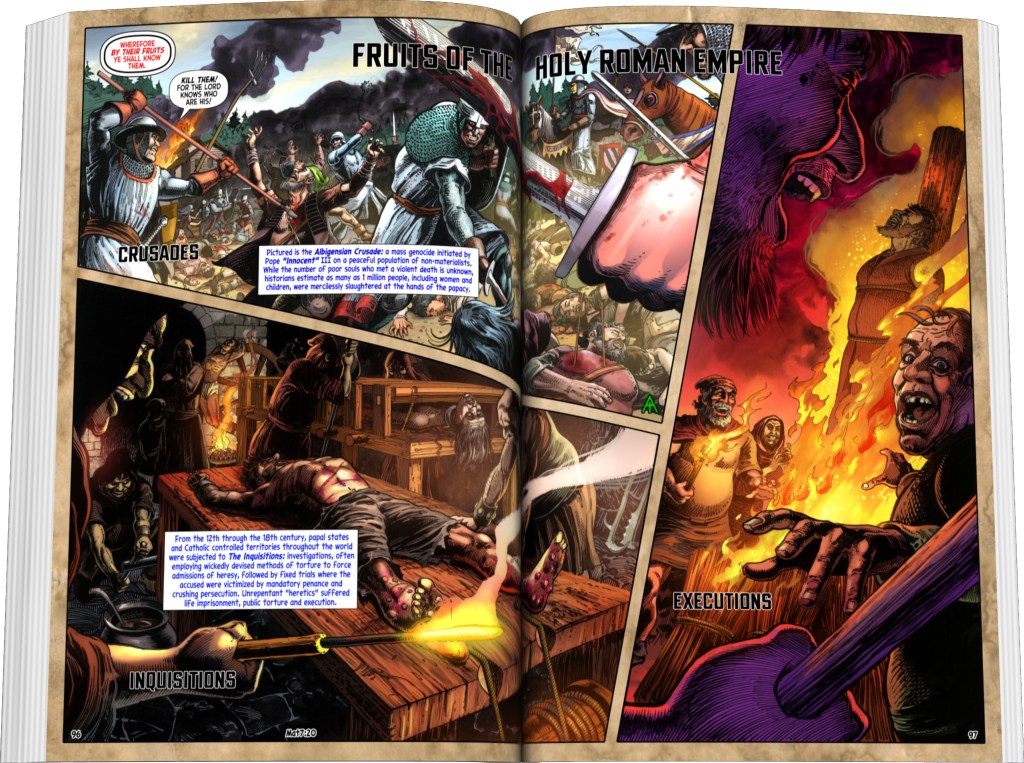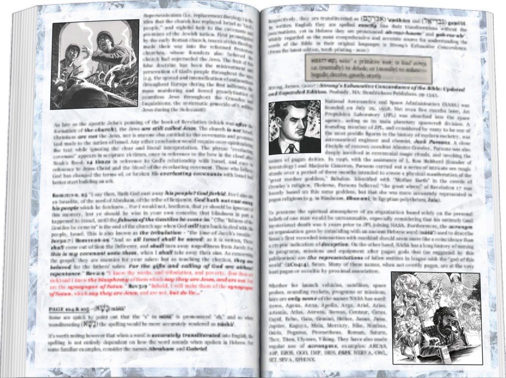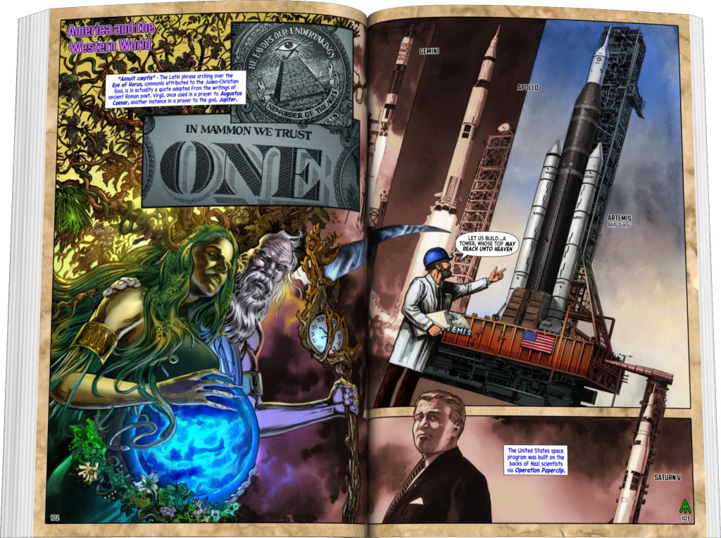 Bold claims throughout the graphic novel are supported by well-researched endnotes and stunning additional artwork. Complex conspiracies with deep historical, theological, and scientific implications are further examined using sources from the opposing perspectives, leaving no room for doubt in the jaw-dropping conclusions. Hidden truths emerge from ancient manuscripts, official church writings translated from Latin, and work published by the U.S. government printing office. Whether or not you agree, one thing is certain—you’ll never see the world the same way again.